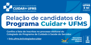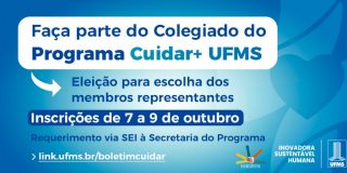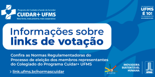 Confira as Normas Regulamentadoras do Processo de eleição dos membros representantes do colegiado do Programa Cuidar+ UFMS. Disponível em: Informações sobre os Links de Votação – Edital SEPAS/PROGEP – 04/2025